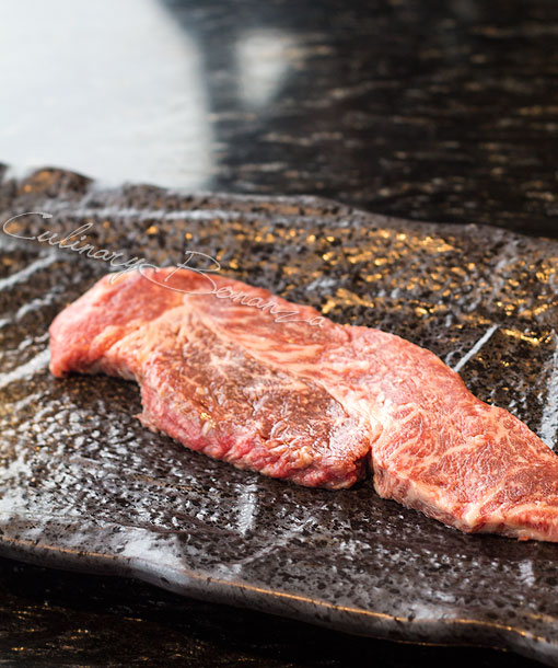 Course yang didapatkan diantaranya: Zen Sai (2 appetizer kecil berupa kroket dan sayuran yang dimarinated), mixed green salad dengan yuzu dressing, cream soup, pilihan antara Seared Foie Gras with Balsamic Teriyaki Sauce atau Seared US Scallops with Kani Sauce, Canadian Lobster, pilihan antara Ohmi Beef/Wagyu 9+/US Prime,